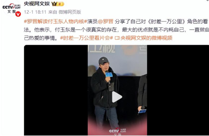 更令人意外的是,在罗晋现身宣发现场后不到12小时,《央视网文娱》和《人民文娱》两大中央媒体接连转发他的新剧宣传视频,并直接点名罗晋。
