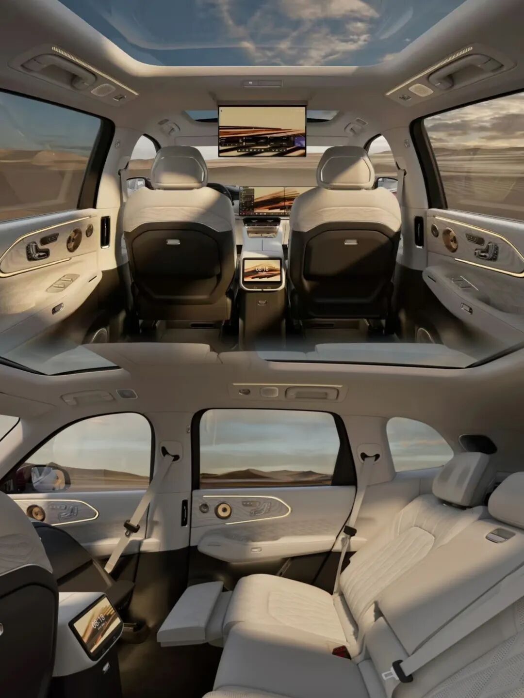 空间速评:极氪8X的长宽高分别为5100mm/1998mm/1780mm,轴距为3069mm,定位于中大型SUV,主打大五座布局,后续将加推六座版本,舱内面积达到5.93㎡,后备箱常规容积达到1133升。四个座椅均支持电动调节、加热、通风和按摩功能,还有伊姆斯躺椅、Naim音响、吸顶娱乐屏、压缩机冰箱等配置。