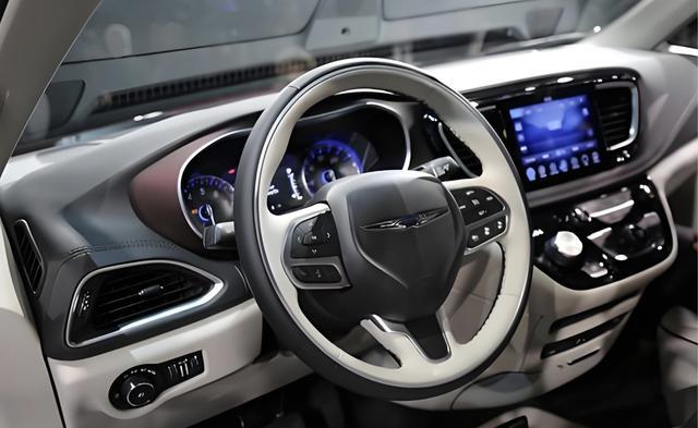 进入车内,克莱斯勒Pacifica大捷龙采用了大面积米白色软性材质和黑灰色皮革材质的交替铺陈,加入了大量黑色钢琴烤漆饰板,银色金属饰条,大颗粒旋钮,还有排列整齐的、类似“钢琴键”的物理按键。中控台配备了经典的三辐式多功能方向盘,操控岛还加入了经典的换挡手柄,带来了更好的操控体验。科技感方面,该车配备了全液晶仪表、10.1英寸中控屏、副驾驶多媒体液晶屏以及后排多媒体娱乐大屏,内置Uconnect 5娱乐系统并支持无线Apple CarPlay和Android Auto手机互联。车内提供了7座或8座布局,并依旧保留Stow 'n Go座椅功能,可以快速折叠并形成纯平表面,丰富户外生活场景。还具备L2级驾驶辅助功能。